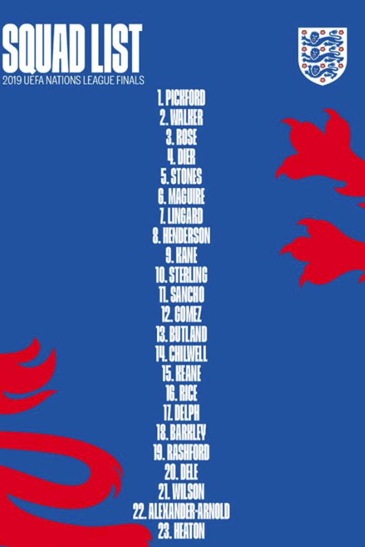 잉글랜드 대표팀은 28일(한국시간) 네덜란드와 유럽축구연맹(UEFA) 네이션스리그 4강전에 나설 23인의 명단을 공개했다.