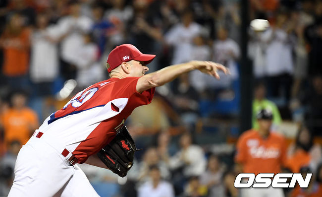 KIA를 상대로는 지난 17일 대전 경기에서 5⅔이닝 7피안타(1피홈런) 3볼넷 3탈삼진 3실점으로 패전투수가 된 바 있다. 당시 터너에게 완패한 만큼 이번에는 설욕이 필요한 채드벨이다. /waw@osen.co.kr