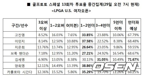 LPGA U.S. 여자오픈 1라운드 대상 골프토토 스페셜 13회차 중간집계