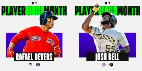 이달의 선수에는 내셔널리그 조쉬 벨(피츠버그)과 아메리카리그 라파엘 데버스(보스턴)가 뽑혔다. 벨은 5월 한 달 동안 타율 3할9푼 12홈런 26득점 31타점으로 내셔널리그를 폭격했다. 데버스 역시 타율 3할8푼 8홈런 25득점 24타점으로 불방망이 활약을 펼쳤다.