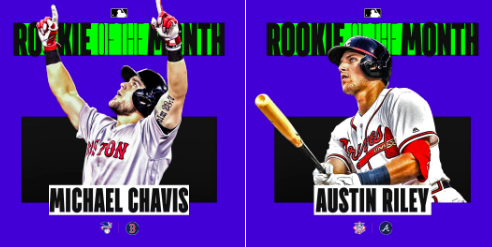 5월의 신인은 내셔널리그 오스틴 라일리(세인트루이스)와 아메리칸리그 마이클 차비스(보스턴)가 이름을 올렸다. 라일리는 타율 3할5푼6리 7홈런 20타점을 기록했다. 차비스는 타율은 2할4푼8리으로 다소 낮지만 7개의 홈런을 때리는 등 14득점 19타점의 성적을 남기며 5월의 신인에 뽑혔다.