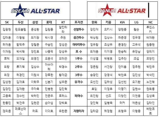 내달 20일 창원NC파크에서 개최되는 2019 KBO 올스타전은 드림 올스타(SK, 두산, 삼성,롯데, KT)와 나눔 올스타(한화, 키움, KIA, LG, NC)로 팀을 나눠 각 구단으로부터 추천 받은 후보 선수 120명을 대상으로 팬 투표와 선수단 투표를 거쳐 양 팀의 ‘베스트12’ 24명이 최종 선정된다.