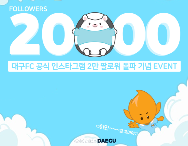 대구FC가 운영하는 공식 인스타그램이 팔로워 2만명 돌파를 기념해 ‘이만~큼 고마워요’이벤트를 진행한다.