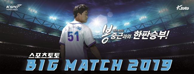 체육진흥투표권 스포츠토토의 수탁사업자인 케이토토(www.ktoto.co.kr)는 오는 6월 8일(토)과 9일(일) 오전 11시부터 오후 8시까지 영등포 타임스퀘어 아트리움 센터에서 프로야구 레전드 선수 봉중근과 함께 하는 ‘스포츠토토 빅매치 2019’를 실시한다고 밝혔다.