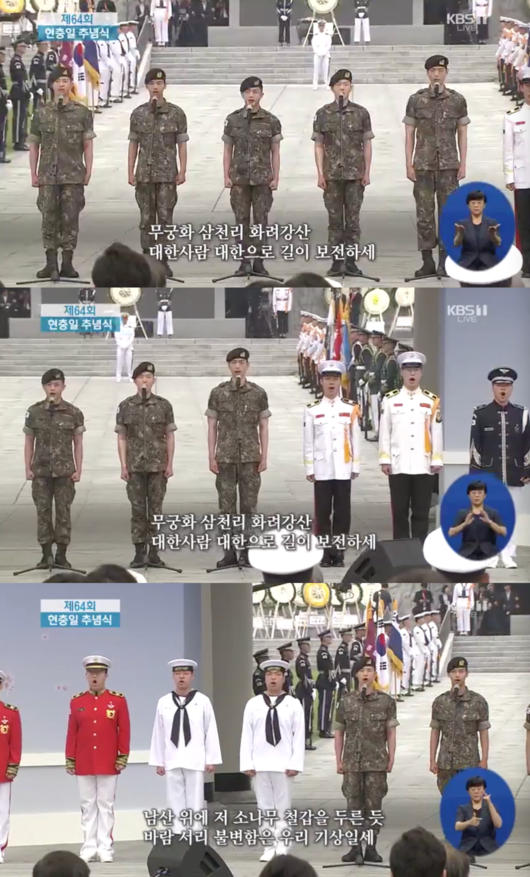 김민석 일병과 방성준 일병(성준), 이창섭 일병(비투비 이창섭), 신동우 일병(B1A4 신우), 차학연(빅스 엔) 이병은 국방부 중창단과 함께 늠름한 모습으로 애국가를 제창했다.