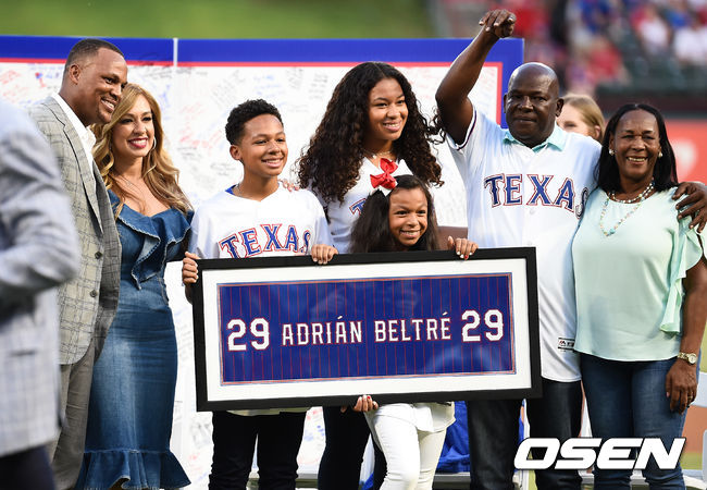 텍사스 구단은 9일(이하 한국시간) 미국 텍사스주 알링턴 글로브라이프에서 애드리안 벨트레의 영구결번식을 진행했다.