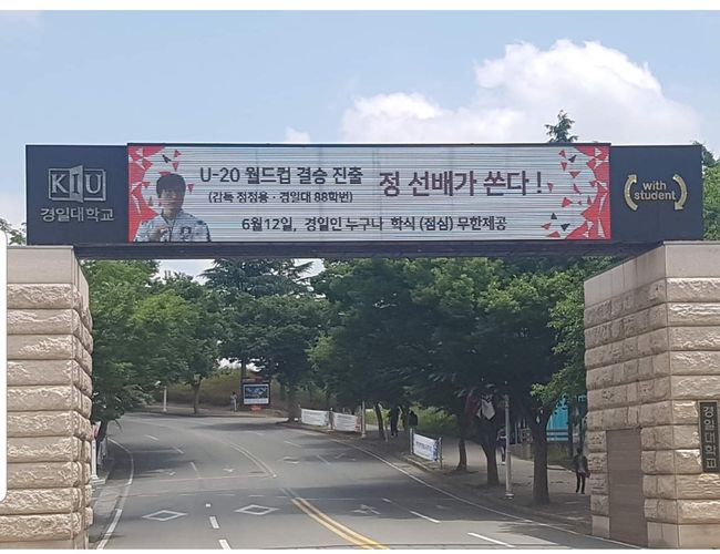 또 경일대는 U-20 월드컵 대회 직전부터 교내에 ‘정정용 선배’를 응원하는 현수막이 곳곳에 내걸리며 분위기가 달아올랐다.