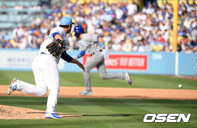 류현진은 1-0으로 6회초 선두타자 하비에르 바에즈를 3루수 땅볼로 유도했다. 하지만 3루수 저스틴 터너가 1루에 악송구를 범했다. 실책으로 출루. 이후 상황들도 혼란스러움의 연속이었다. 크리스 브라이언트의 빗맞은 타구는 2루수와 우익수 사이에 떨어졌다. 2개의 타구로 무사 1,3루로 변했다.