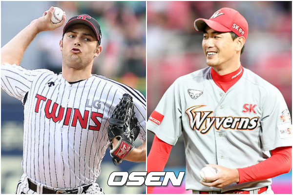 시리즈 첫 날 에이스 맞대결이 성사됐다. LG는 외국인 투수 타일러 윌슨, SK는 에이스 김광현이 선발로 출격한다.
