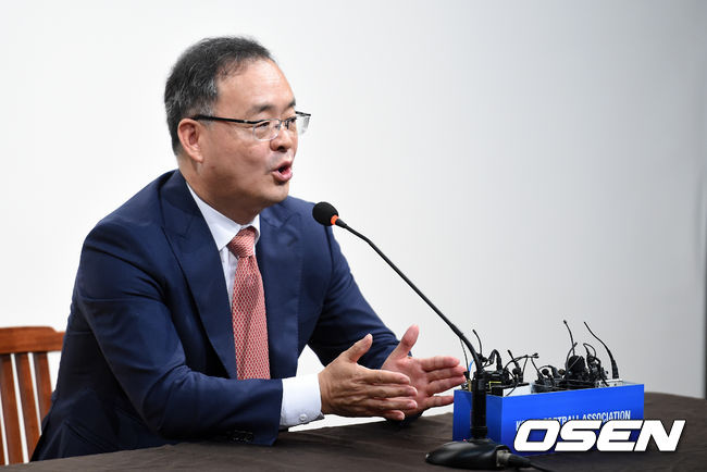 정정용 감독은 한국 U-20 대표팀의 전반적인 대회 성과와 과제에 대해 발표하고, 오성환 코치는 U-20 대표팀의 체력 준비를 설명한다.