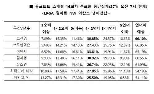 1번 고진영 언더파 가능성 가장 높게 꼽아…28일(금) 오후 7시 50분 마감