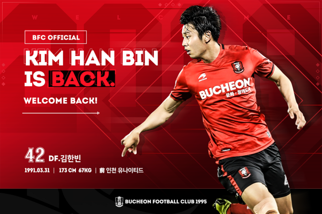 부천은 28일 지난해 인천으로 이적했던 김한빈을 다시 임대영입 했다고 발표했다. 임대기간은 올해 말까지이며, 등번호는 42번을 배정받았다.