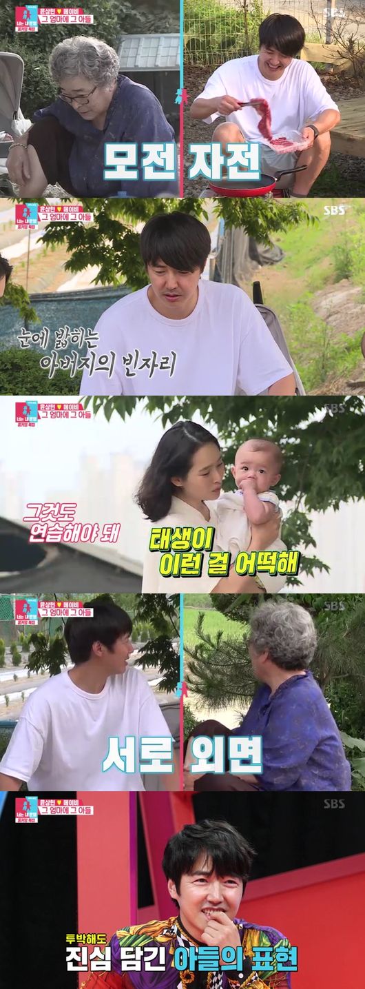 아니나 다를까, 윤상현은 셀프 평상을 만들기에 돌입했다. 분식집 사장시절 직접 인테리어를 했던 내공을 소환, 능수능란하게 만들기 시작했다. 메이비도 "진짜 무언가 할 줄 아는 느낌"이라며 신기해했다. 이를 바라보던 母는 "마당에 평상 하나 있었으면, 평생 소원이었다"면서 애틋한 눈빛으로 아들을 바라봤다. 아들이 남편을 대신해 소원을 성취해줬다며 기뻐했다. 윤상현은 목공실력을 폭발, 열정을 불태웠다.