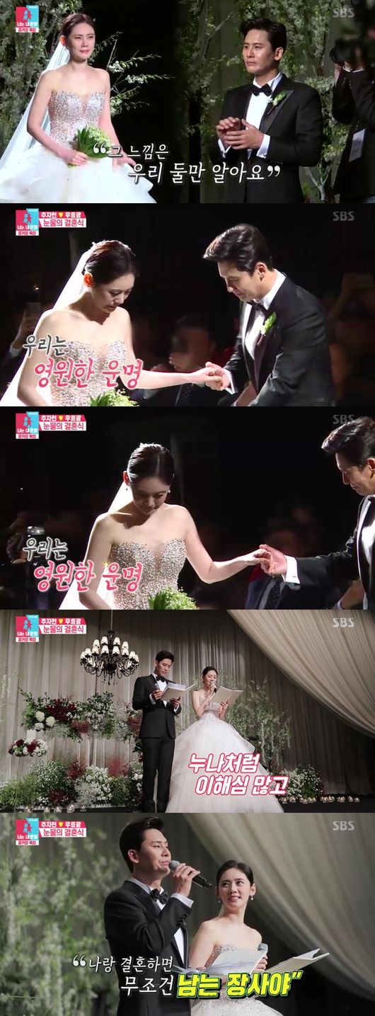 결혼식의 꽃인 신부가 들어오자, 환호 소리는 더욱 커졌다. 추자현은 "내 인생이 저 남자 인생으로 가는 순간"이라면서 떨리는 걸음으로 남편 우효광에게 다가갔다. 우효광도 "가슴 깊숙이 감동을 느겼다, 지금껏 많이 상상해왔다"며 눈물을 닦았다. 우효광은 "여기까지 많은 어려움이 있었다, 우리 둘만이 그 느낌을 안다"면서 "드디어 우리의 늦은 결혼식이 왔구나"라며 회상했다. 모두의 축복 속에서 두 사람은 서로의 손을 마주잡았다.