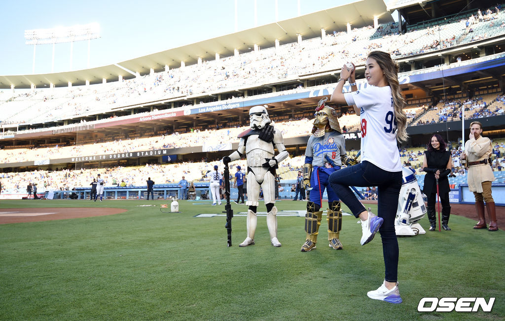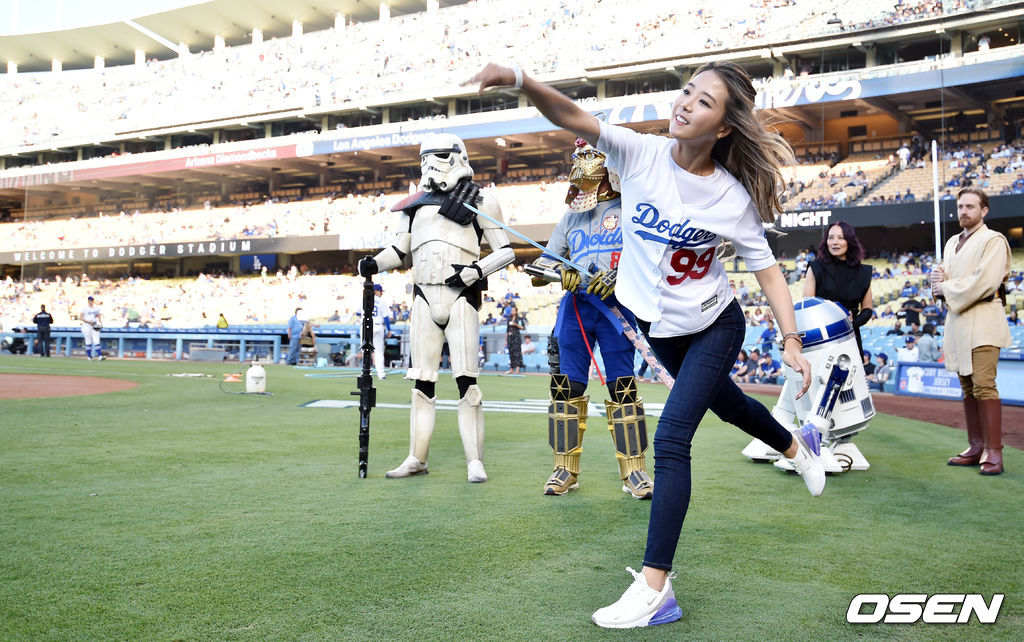 LA 다저스는 ‘한 솔로’로 변신한 류현진의 버블헤드 인형 ‘현 솔로’를 소개하면서 ‘스타워즈 데이’ 이벤트를 진행했다. 홈 경기에 스페셜 티켓을 구매하는 팬들에게 류현진 버블헤드 인형을 선물로 나눠줬다. 그야말로 ‘류현진의 날’이라 할 수 있는 이날 류현진의 아내 배지현이 시구로 나서면서 의미를 더했다.