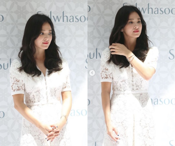 이날 송혜교는 단아한 화이트 원피스에 웨이브진 머리를 늘어뜨렸다. 힘든 시간을 보내고 있지만 여전한 미모로 눈길을 끌었다.