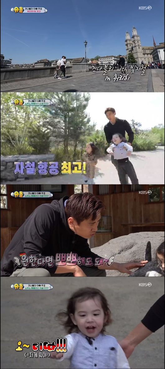 ‘슈퍼맨이 돌아왔다’ 나은과 건후가 광희와 이별한 뒤 새 삼촌 구자철을 만나 스위스 여행을 이어갔다.