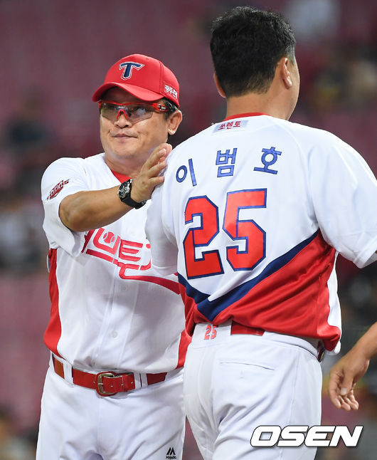 이어 "선수들이 오늘 만큼은 꼭 이겨주면 좋겠다. 내가 원래 이런 말은 잘 안한다. 최선을 다하면 이길 수도 질 수 있지만, 선수들에게 떠나는 범호를 기쁘게 해주고 싶다는 말을 했다"며 웃었다. /sunny@osen.co.kr