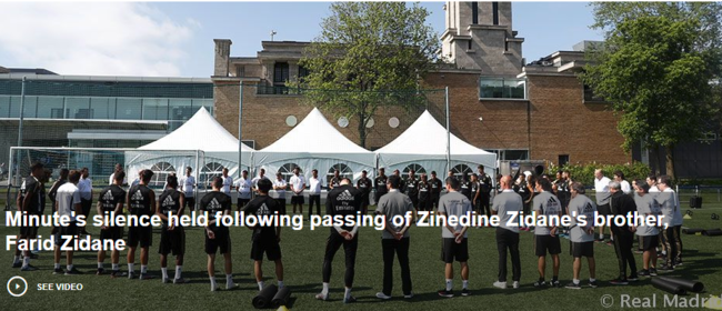레알 마드리드는 지난 13일(한국시간) "지네딘 지단 감독이 프리시즌 중 팀을 떠난 이유는 친형 파리드 지단의 사망때문이다"라고 발표했다.