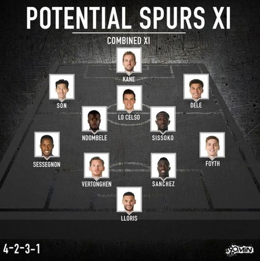 영국 데일리스타는 13일(이하 한국시간) 2019-2020시즌 토트넘의 예상 베스트11을 전망했다. 새롭게 합류한 선수와 함께 토트넘 이적설이 돌고 있는 선수들을 포함했다.