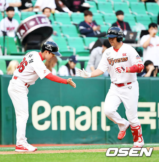 최정은 7회에도 1타점 2루타를 터뜨리는 등 4타수 3안타 3타점으로 맹활약했다. 전날에도 3타점으로 좋은 타격감을 이어갔다.
