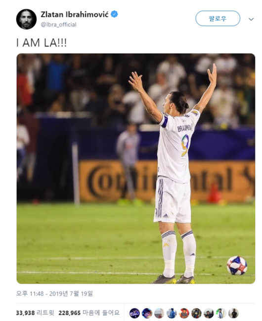 이후 즐라탄은 자신의 SNS에 해트트릭을 기록한 사진을 올리며 "내가 LA다(I AM LA)"라는 짧은 문구로 완전 승리를 선언했다. /mcadoo@osen.co.kr
