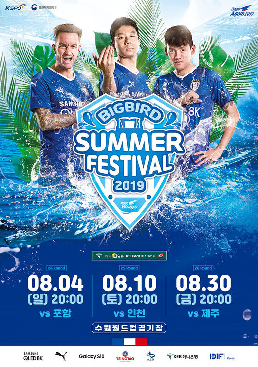 썸머페스티벌 1탄인 포항전(8/4)은 ‘승리의 물대포를 쏴라’라는 컨셉트로 진행된다. 승리 후 N석을 향해 물대포를 쏘며 팬들과 함께 승리를 만끽하는 ‘승리의 물대포’는 2014년부터 시작한 수원 여름 응원의 상징이다.