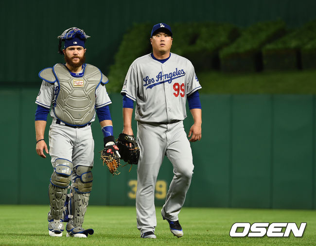 한미 통산 150승에 도전하는 류현진은 '단짝' 포수 러셀 마틴과 배터리로 나선다. 처음에는 신인 포수 윌 스미스가 이날 콜업돼 선발 출장하는 것으로 알려졌으나, 마틴이 선발 포수로 최종 발표됐다. 약간의 혼선이 있었던 것으로 보인다. 이로써 류현진은 마틴과 15경기 연속 배터리 호흡을 맞추게 됐다.