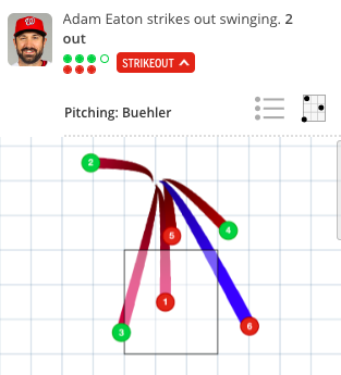 2번타자로 나선 이튼은 3볼 1스트라이크에서 5구째 높은 공에 1루로 걸어나가다, 제레미 레악 구심이 스트라이크 판정에 깜짝 놀라며 되돌아왔다. 이어 몸쪽 슬라이더에 헛스윙 삼진. 더그아웃으로 돌아가던 이튼은 구심을 향해 5구째 판정에 대해 어필했다. 심판은 여지없이 퇴장을 선언했다.
