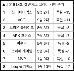 이 승리로 3연승을 달린 팀 다이나믹스는 9승 2패 득실 +13을 기록하면서 VSG를 다시 2위로 끌어내리고 1위 자리에 앉았다. 반면 아수라는 5위까지 진출할 수 있는 승강전 플레이오프를 확정하지 못한 채 다음 경기에 임하게 됐다.
