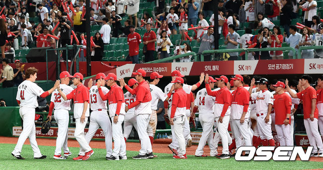 SK는 올해 67승31패 1무 승률 6할8푼4리로 독보적인 1위 자리를 지키고 있다. 2위 키움과는 7.5경기 차이. 45경기를 남겨둔 시점에서 특별한 전력 누수도 없다. 더욱 견고해지는 과정이기에 이 격차가 뒤집히는 것은 상상하기 힘들다. SK의 독주체제가 더욱 심화될 것이라는 게 중론이다.