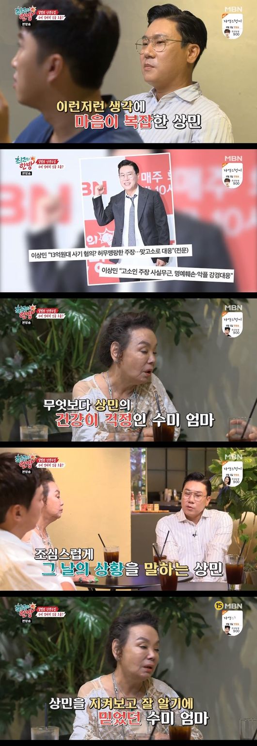 김수미는 들어오자마자 이상민 걱정부터 했다. 이에 김수미는 "얼굴이 더 좋아보인다. 혹시 걱정을 해야 얼굴이 좋아지냐"고 물으며 분위기를 환기 시켰다.