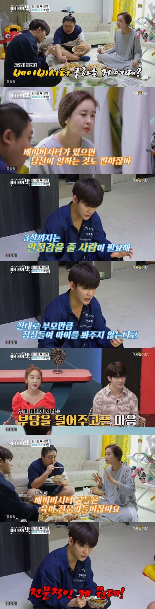함소원은 베이비시터는 전문적인 교육을 받은 사람이라서, 아이를 잘 키울 수 있다고 했지만, 진화는 "전문적인 게 뭐냐? 부모가 아이를 제대로 가르치면 그게 전문적인 거다"라며 동의하지 않았다. 진화의 친구도 "아이는 부모가 직접 키우는 게 좋은 것 같다"고 했다.