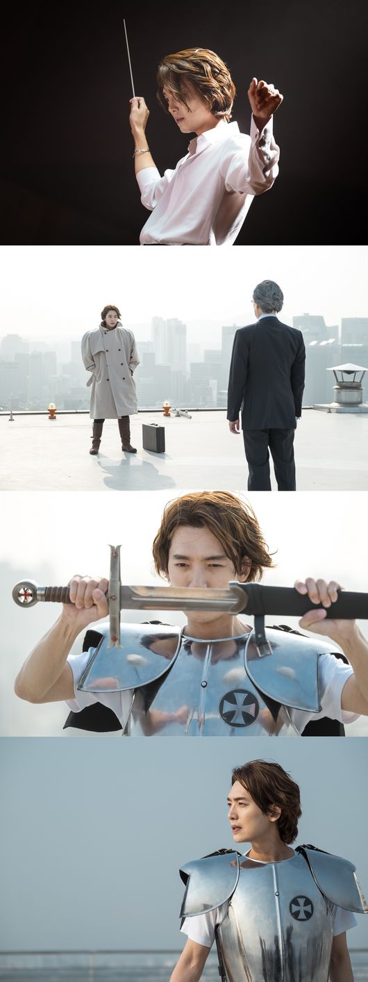 첫 방송을 앞두고 공개된 사진에는 영혼 사수를 위한 하립의 ‘웃픈’ 고군분투가 담겨 궁금증을 높인다. 먼저 무대 위에서 지휘를 하는 스타 작곡가 하립의 우아한 매력이 시선을 사로잡는다. 예민함마저도 설렘을 유발하는 하립의 비주얼이 보는 이들의 마음을 흔든다. 하지만 이어진 사진 속 하립의 반전 매력은 폭소를 자아낸다. 한껏 솟은 어깨로 의문의 남자와 대치하고 있는 하립. 트렌치코트를 벗자 ‘파워숄더’의 비밀이 드러난다. 하립이 악마 퇴치를 위해 공수한 중세 갑옷을 입고 있었던 것. 사뭇 진지한 표정으로 검을 들어 올린 그의 절박함이 왠지 모르게 웃음을 유발한다. 과연 하립이 옥상에서 마주한 인물은 누구이고, 무사히 자신의 영혼을 사수할 수 있을지 호기심을 자극한다.