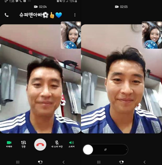이와 함께 올린 사진에서 이동국은 딸 재시-재아와 함께 영상통화를 하고 있다. 경기장 선수 대기실에 이동국은 더운 날 관중석에서 지루하게 기다리고 있을 아이들을 걱정하며 다정한 미소를 짓고 있다.