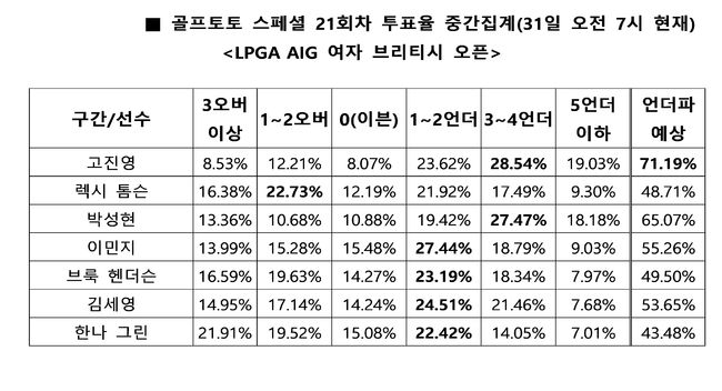 LPGA AIG 여자 브리티시 오픈 1라운드 대상 골프토토 스페셜 21회차 중간집계
