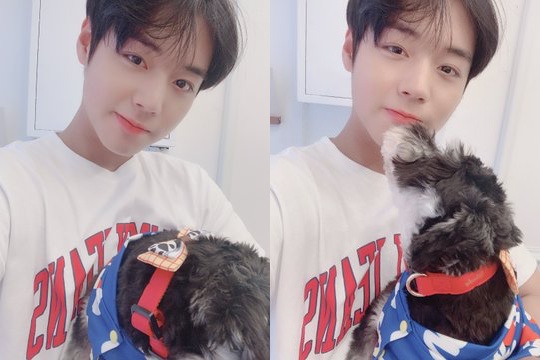 4장의 사진이 올라왔는데 박지훈은 강아지를 품에 안고서 흔들림 없는 셀카 본능을 뽐내고 있다. 가만히 있지 못하는 강아지인데도 박지훈의 ‘만찢’ 비주얼은 변함없다.
