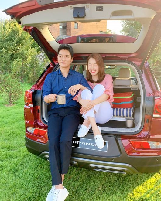 공개된 사진 속 인교진 소이현 부부는 차 트렁크에 앉아 있다. 인교진은 푸른색 계통의 셔츠와 슬랙스로 멋을 냈고, 소이현은 분홍색 블라우스를 찰떡 소화 중이다.