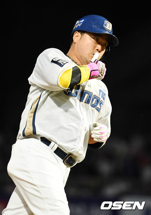 이어 "어제 박치국의 공이 몸쪽으로 말려 들어오는 것 같아서 오늘 교체되고 난 뒤에도 몸쪽 직구에 반응이 늦지 않게 준비를 했다. 그런 상황에서 박치국의 공이 가운데로 몰려 홈런으로 연결 된 것 같다"며 만루 홈런 상황을 되돌아봤다.