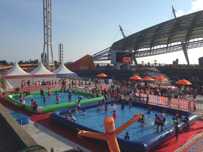 당첨되지 않았다고 실망할 필요는 없다. E석 광장에는 대형 POOL까지 설치돼 누구든지 다양한 물놀이 이벤트를 만끽할 수 있다. 탈의실까지 완비해 편의를 제공한다.(수건, 여벌옷 등 개인지참)