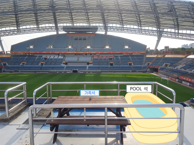 이번 제주유나이티드가 마련한 워터카니발 중 눈에 띄는 것은 최초로 시도되는 POOL석을 운영한다는 점이다. E석 광장에 필드가 보이는 시야로 15개가 배치된 POOL석은 물놀이를 하며 축구까지 볼 수 있는 축캉스의 끝판왕이 될 것으로 전망된다.
