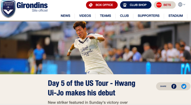보르도가 이적생 황의조(27)에게 큰 기대를 걸고 있다.
