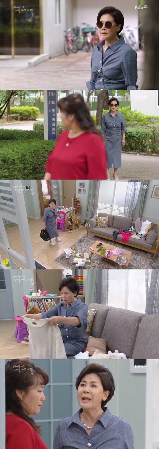 길을 나서던 하미옥(박정수)는 한창 일할 시간에 외출중인 강미선(유선)의 육아도우미를 길에서 마주쳤다. 육아도우미를 따라가던 하미옥은 이내 발길을 돌려 강미선의 집으로 향했다. 집으로 들어선 하미옥은 정리가 되지 않은 옷들, 켜져 있는 TV와 에어컨을 보고 기함하며 부엌으로 들어갔다. 부엌 역시 정리가 되지 않았고, 냉장고에는 맥주캔이 여러 개 들어 있었다.