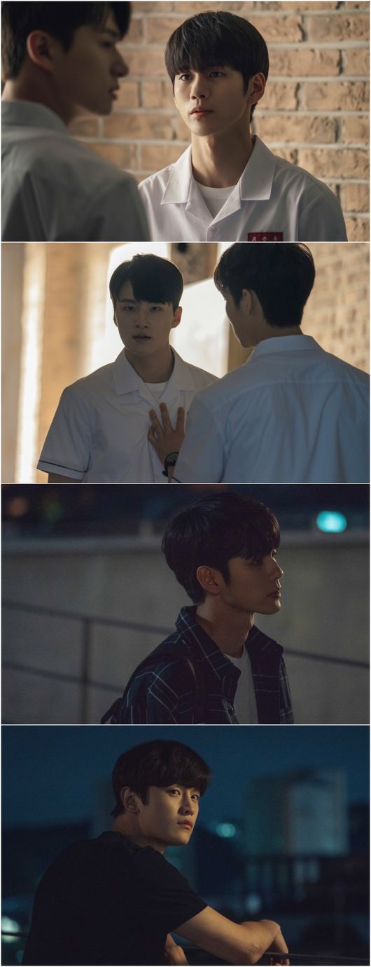 그런 가운데 준우의 심상치 않은 변화가 감지됐다. 공개된 사진 속 준우와 휘영의 대립이 팽팽한 긴장감을 자아낸다. 휘영의 계획을 알게 된 준우의 차가운 눈빛과 자신의 철벽을 뒤흔드는 그의 자극에 뜨겁게 타오르는 휘영의 눈빛이 대비를 이루며 위태로운 두 소년의 갈등이 어떤 변화를 가져올지 궁금증을 더한다. 이어진 사진 속 준우와 상훈(김도완 분)의 한밤중 만남도 호기심을 자극한다. 준우의 날 선 눈빛이 사그라지지 않은 그의 분노를 짐작게 한다. 평소 능청스럽게 자신의 속내를 감춰오던 상훈의 달라진 분위기도 호기심을 자극한다. 준우와 휘영의 갈등에 불을 지핀 시계 도난 사건의 유일한 목격자인 상훈. 준우가 그를 찾아간 이유는 무엇인지, 거짓 증언으로 준우를 범인으로 몰았던 상훈이 진실을 밝히게 될 것인지 귀추가 주목된다.