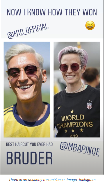 미국 '스포츠 바이블'은 "아스날의 외질은 지난 7월 머리를 탈색한 이후 미국 여자 대표팀의 메간 라피노에와 닮은 꼴로 화제를 모으고 있다"라고 보도했다.