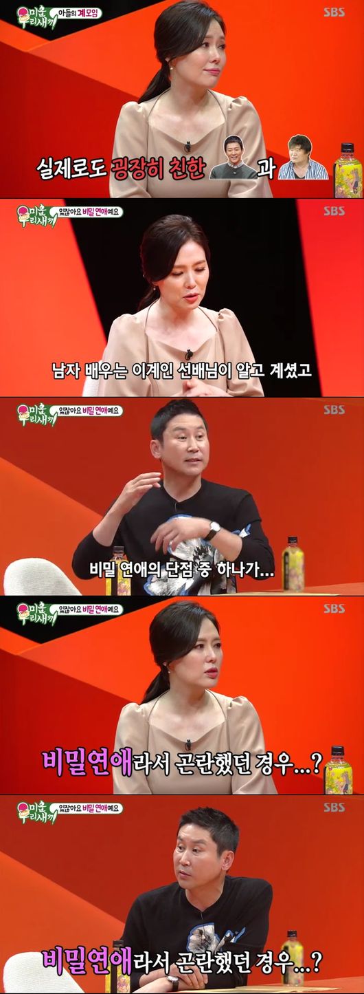 이에 MC 신동엽은 비밀연애 단점을 꼽으며 곤란했던 경우 있는지 질문했다. 하희라는 "반대로 다른 남자배우가 고백하면 좋아하는 사람이 있다고 정중히 거절했다, 이후로 그 남자배우 만난 적 없다"고 덧붙여 눈길을 끌었다.