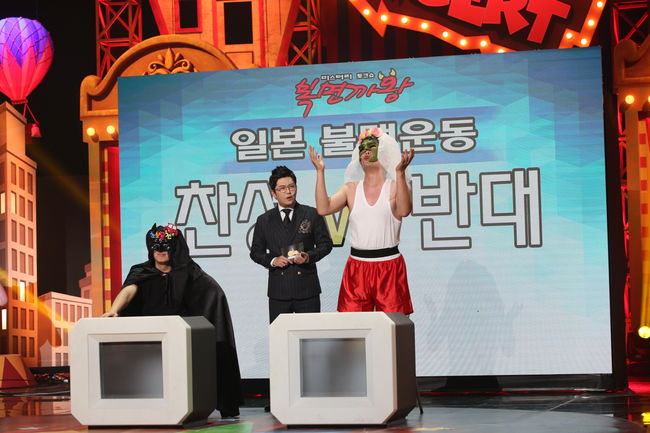 이날 '복면까왕' 속 토론 주제는 일본 제품 불매 운동이었다. 최근 정·재계는 물론, 연예계까지 확산된 일본 불매 움직임을 첫 회부터 다루면서, 본격적인 시사 풍자 코너를 선보이겠다는 각오다.