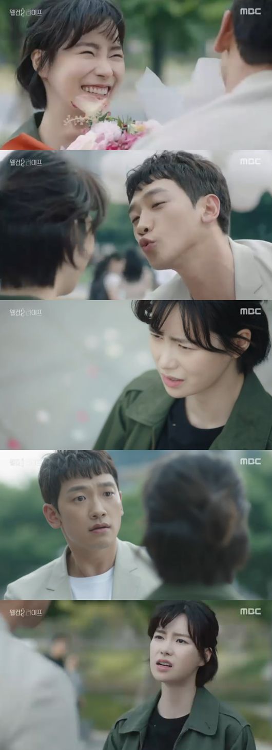 5일 방송된 MBC 월화드라마 '웰컴2라이프(연출 김근홍, 심소연,극본 유희경)'에서 재상(정지훈 분)이 꽃다발을 들고 누군가를 기다렸다. 바로 시온(임지연 분)이었다. 설레는 재상과 달리 시온은 떨떠름한 표정을 지었다. 재상이 2주년 기념 꽃다발을 건네며 애교를 폭발했으나 시온은 "네가 뭘 잘못했는지 모르겠냐"며 꽃다발로 재상을 가격했다. 재상은 "정말 지긋지긋하다"며 분노, 시온은 "너랑 이제 끝"이라며 이별을 통보했다.