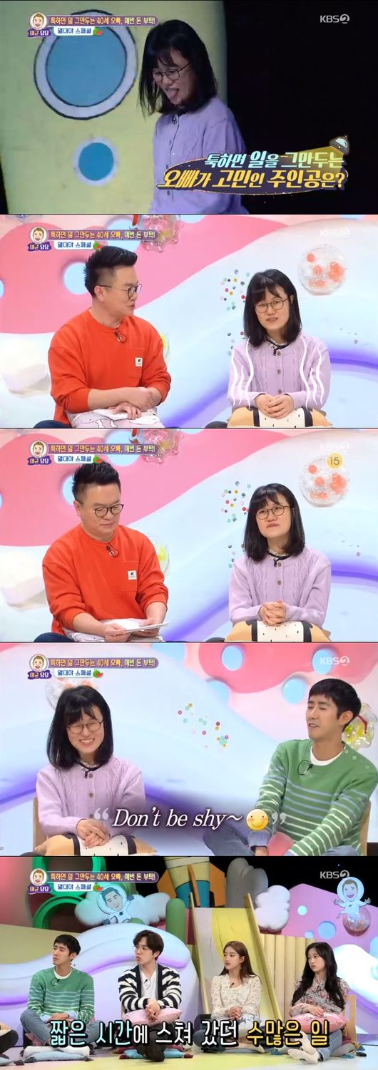 5일 오후에 방송된 KBS 2TV 예능 ‘대국민 토크쇼 안녕하세요’에서는 일을 하지 않는 40세 오빠 때문에 고민인 동생의 사연이 그려졌다.