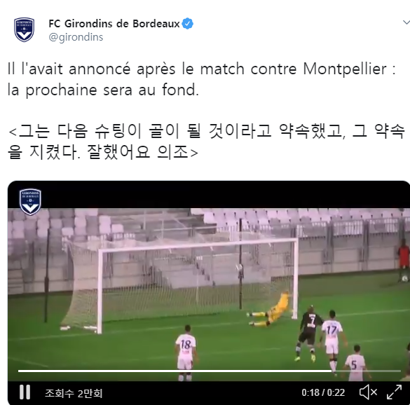 보르도는 5일(한국시간) 공식 SNS를 통해 "황의조는 데뷔전 몽펠리에전이 끝난 이후 다음 슈팅은 골이 될 것이라 약속했다. 그리고 그는 약속을 지켰다. 잘했어 황의조"라고 전했다.